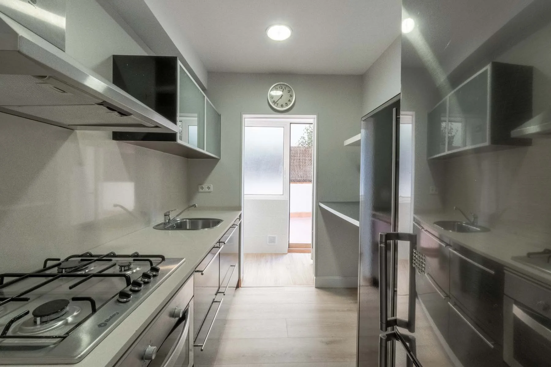 Este piso de 100 m2 consta de 3 habitaciones dobles, una de ellas suite. El salón comedor tiene mucha luz natural, la cocina es abierta y dispone de una barra americana.